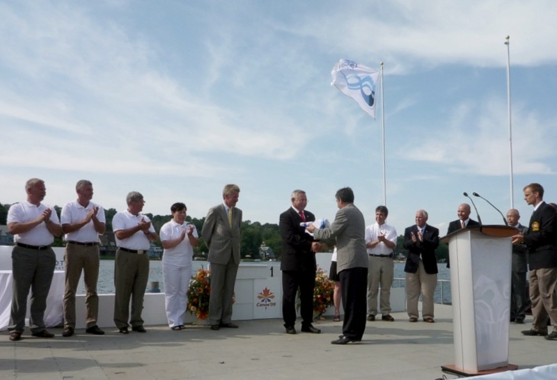 ICF Jose Perurena Lopez przekazuje flagę ICF Prezesowi